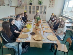 Ponadto 16 kwietnia przedstawiciele uczniów z kl.2 LA i 2 TO wzięli udział w uczcie królewskiej w czasie, której dyskutowano o wydarzeniach historycznych z początków państwowości polskiej oraz znaczeniu koronacji. Zainteresowaniem cieszyły się również ciekawostki z okresu panowania Bolesława Chrobrego zamieszczone na tematycznej tablicy.