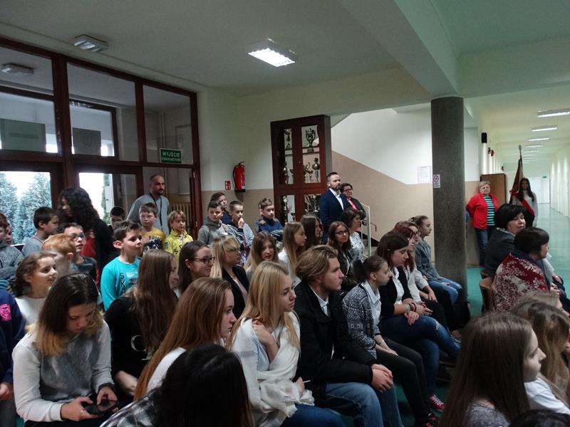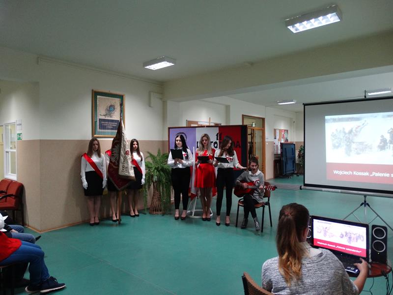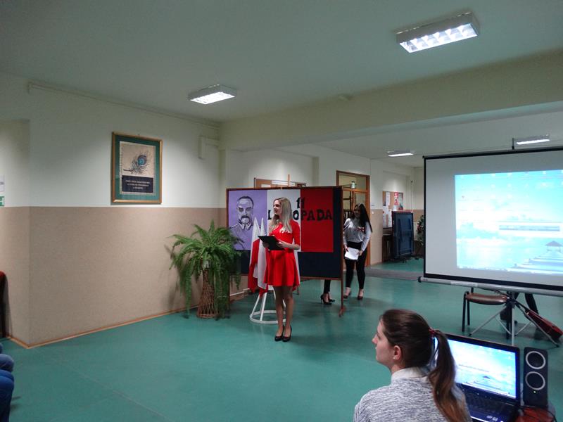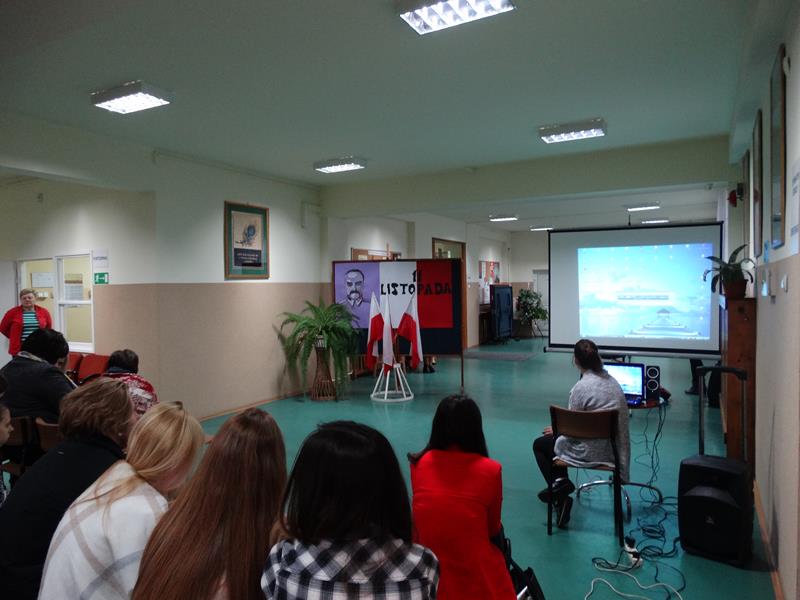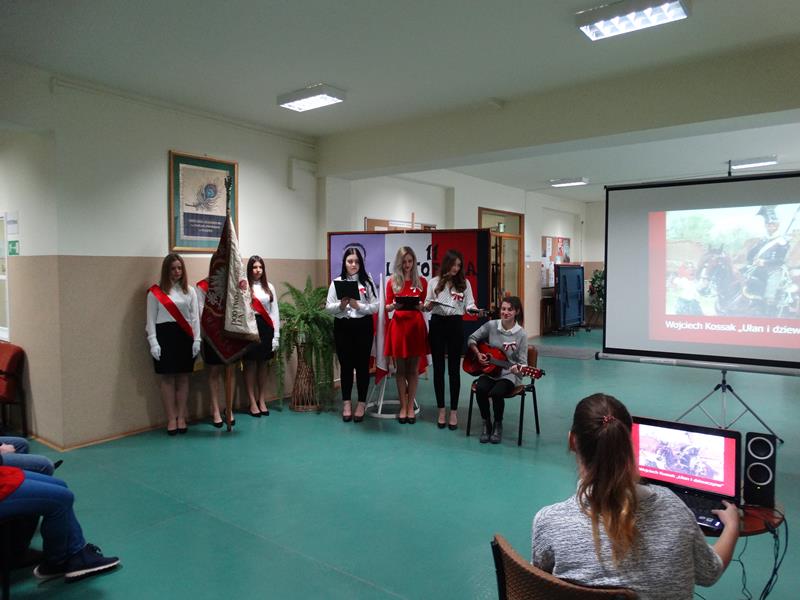 Wraz z Patrycją Kowaniec z klasy I L zaśpiewaliśmy kilka piosenek patriotycznych. Spotkanie zakończyła prezentacja multimedialna.