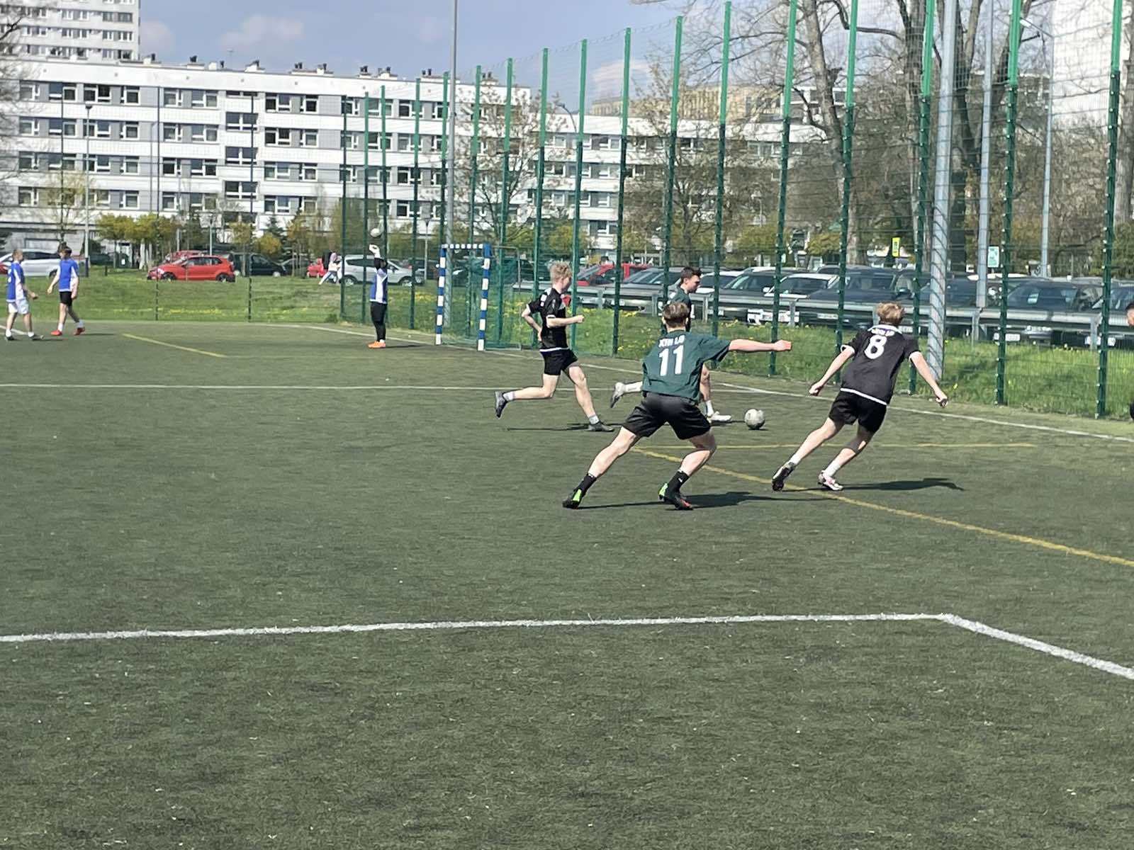 Faza grupowa była, jak się okazało, bardzo ciężką przeprawą dla naszych zawodników i po porażkach 0-5 z Zespołem Szkół Geodezyjno-Drogowych oraz 0-9 z XIII LO zajęliśmy 3 miejsce w grupie. Dało nam to możliwość zagrania w meczu o V miejsce w turnieju z reprezentacją Zespołu Szkół Ekonomicznych.