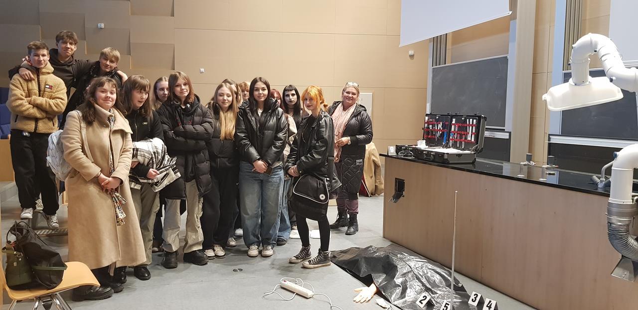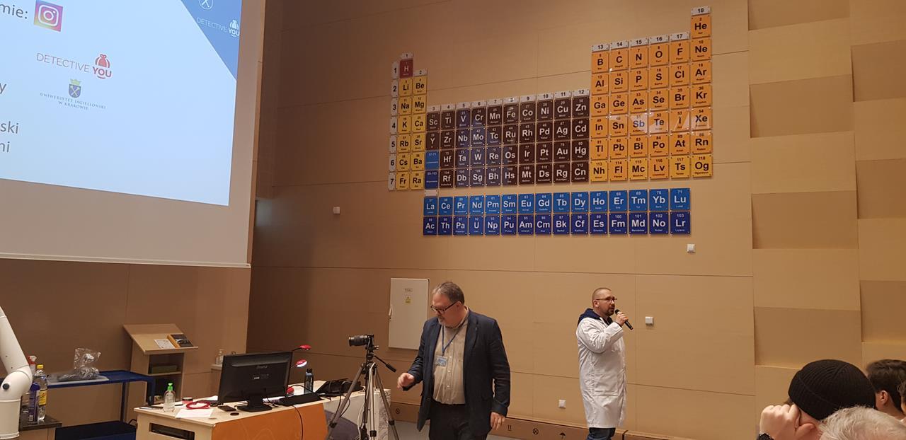 14 marca 2024 r. uczniowie klas 2TSB i 2LB z p. prof. A. Topór uczestniczyli w pokazie doświadczeń przygotowanym przez Zakład Dydaktyki Chemii UJ.