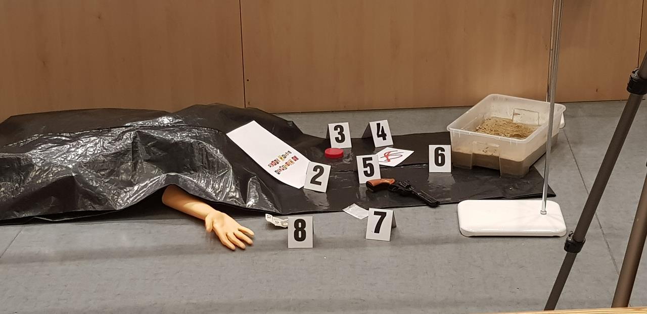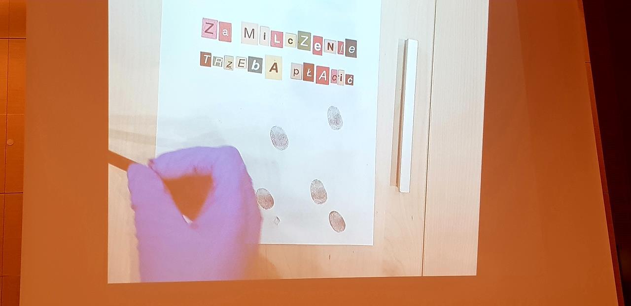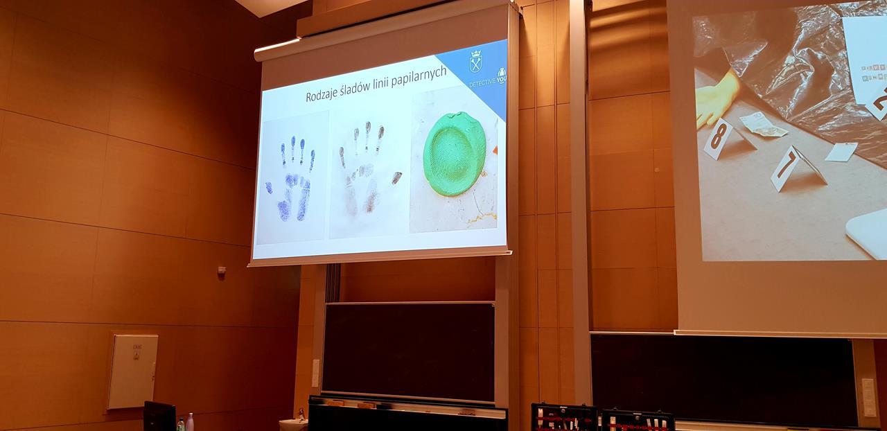 Wykładowcy- chemicy sądowi zaprezentowali techniki ujawniania odcisków palców i krwawych śladów oraz sposoby zabezpieczania śladów traseologicznych ( np. odcisków butów) i powystrzałowych.