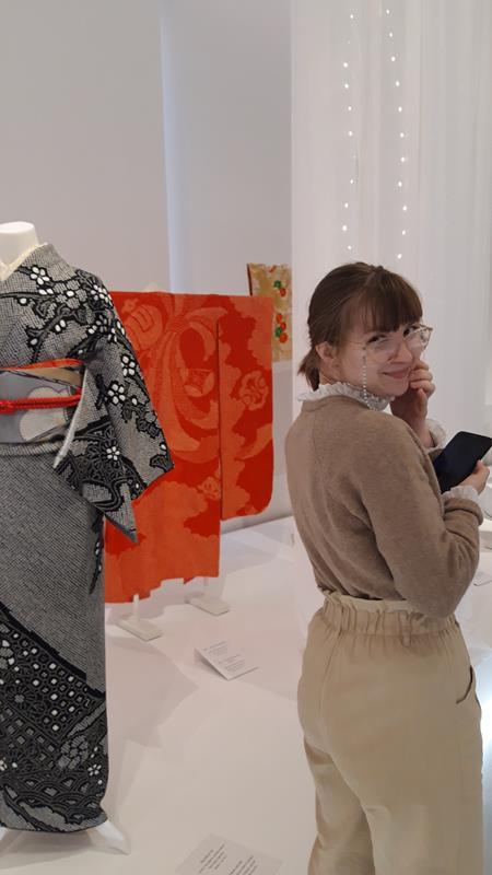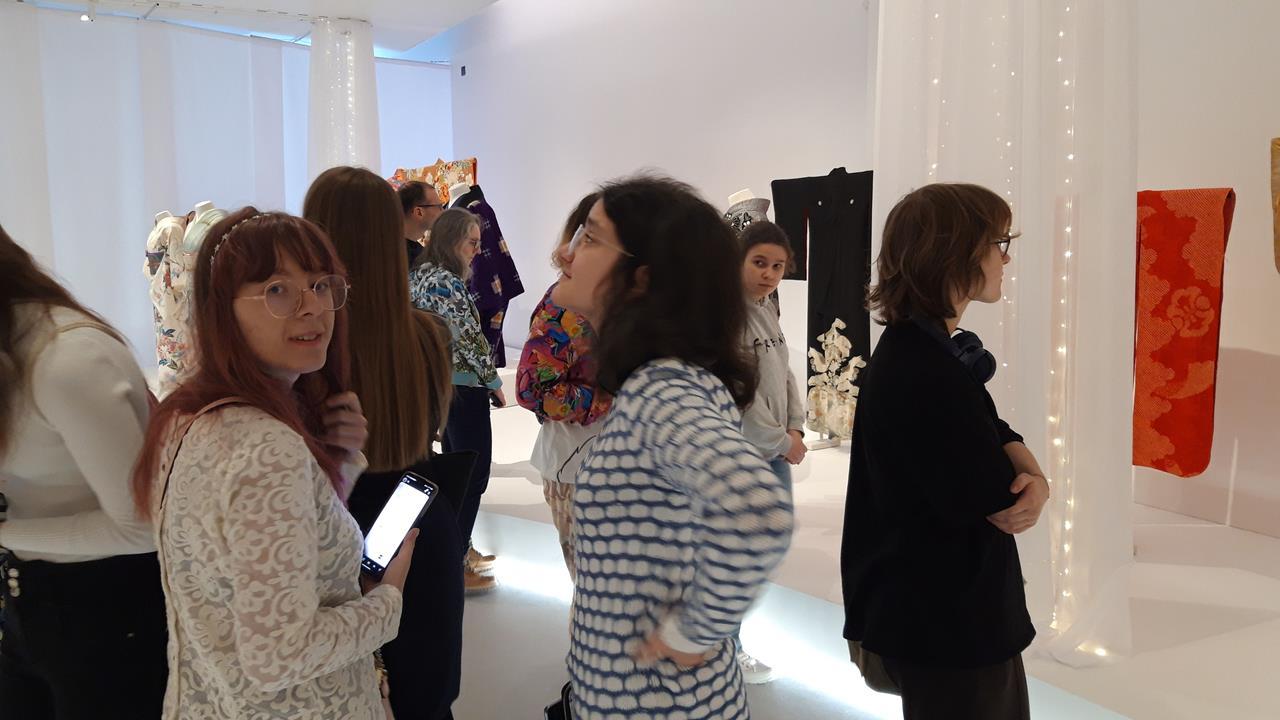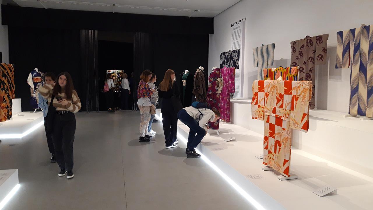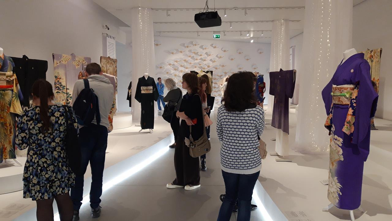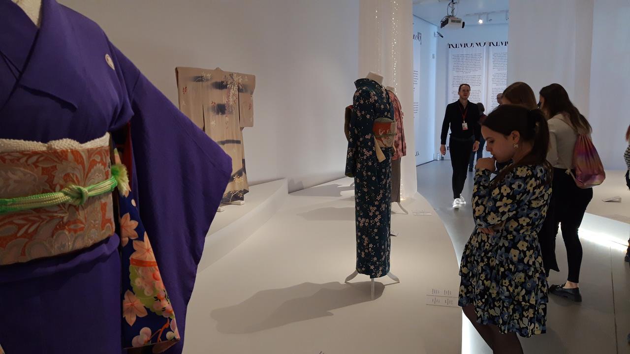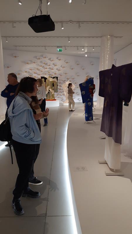 Pani Klasa opowiedziała krótko o historii kimona, jego konstrukcji i symbolice zdobień, a następnie uczniowie mieli możliwość podziwiania oryginalnych, misternie wykonanych kimon, przyjrzenia się technikom tkackim i zdobniczym oraz zestawienia ich ze współczesnymi interpretacjami tego stroju, autorstwa polskich projektantów.