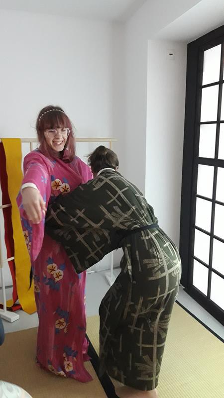 Była też możliwość przymierzenia kimona i przepasania go pasem obi, wg instruktażu wideo.
