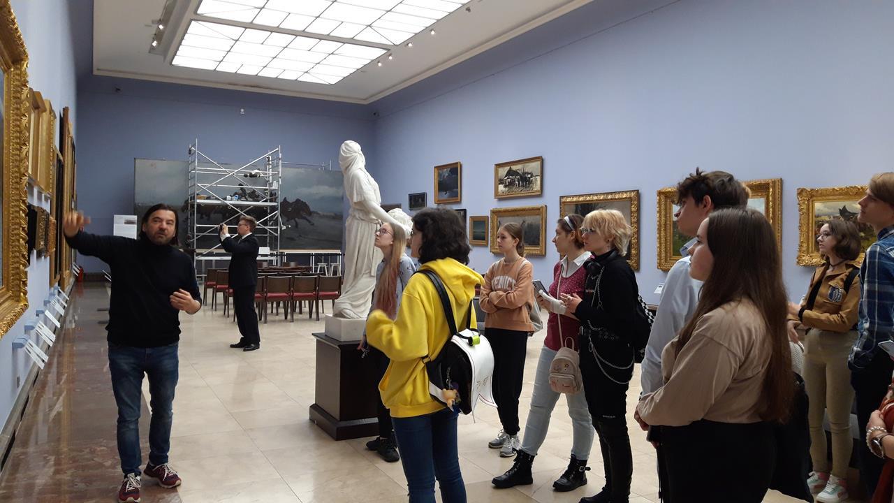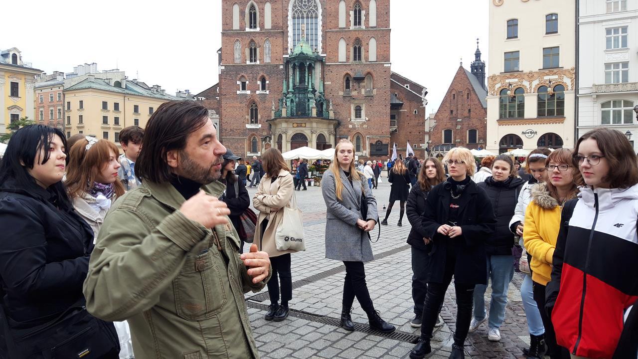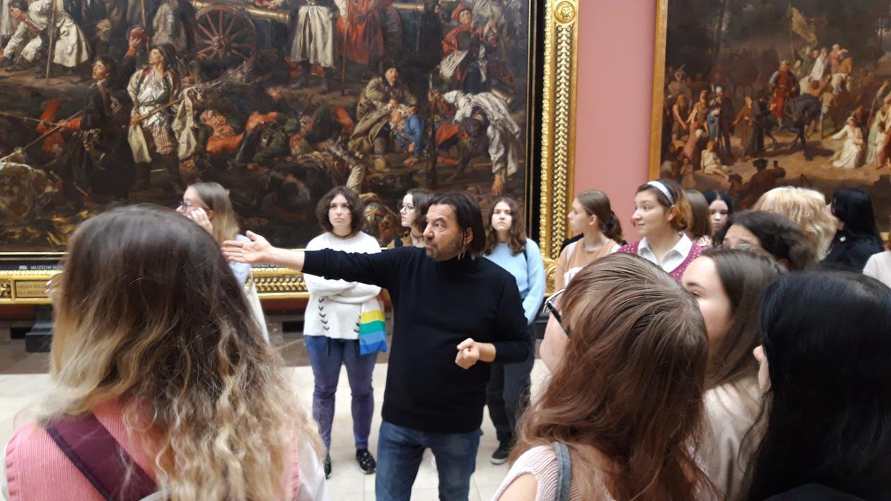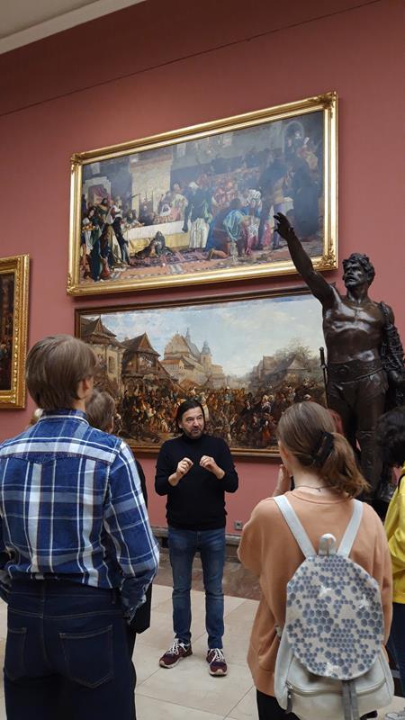 Po obu wystawach oprowadzał uczniów nauczyciel przedmiotów artystycznych w naszej szkole i artysta malarz, p. Artur Zienko.