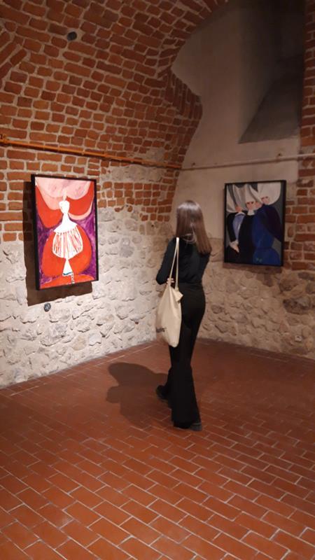 Mieliśmy też okazję obejrzeć obrazy tego projektanta i artysty, wyeksponowane w klimatycznych piwnicach Kamienicy Hipolitów.