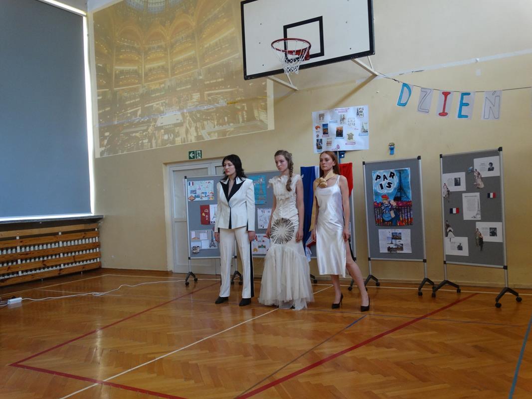 Paryż to kolebka mody, tak więc podczas święta Francji, nie mogło zabraknąć pokazu mody. Szkolne „modelki” zaprezentowały kolekcję sukien flamenco, uszytych podczas tegorocznych praktyk zawodowych w Sewilli oraz kolekcję naszego ucznia Filipa .