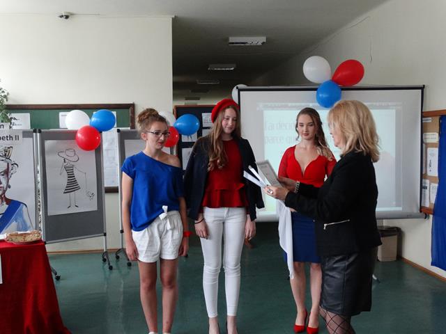 Kolejnym punktem programu był konkurs klasowy na najlepszą stylizację w barwach narodowych Wielkiej Brytanii i Francji. Po pokazie zebrano i przeliczono głosy nauczycieli. Nagrodę za zwycięską stylizacje otrzymała klasa IIIL. Na zakończenie francuskiej części spotkania nastąpiło wręczenie nagród dla uczennic, które zajęły trzy pierwsze miejsca w konkursie plastycznym „Projekt stylizacji w barwach narodowych Francji”.