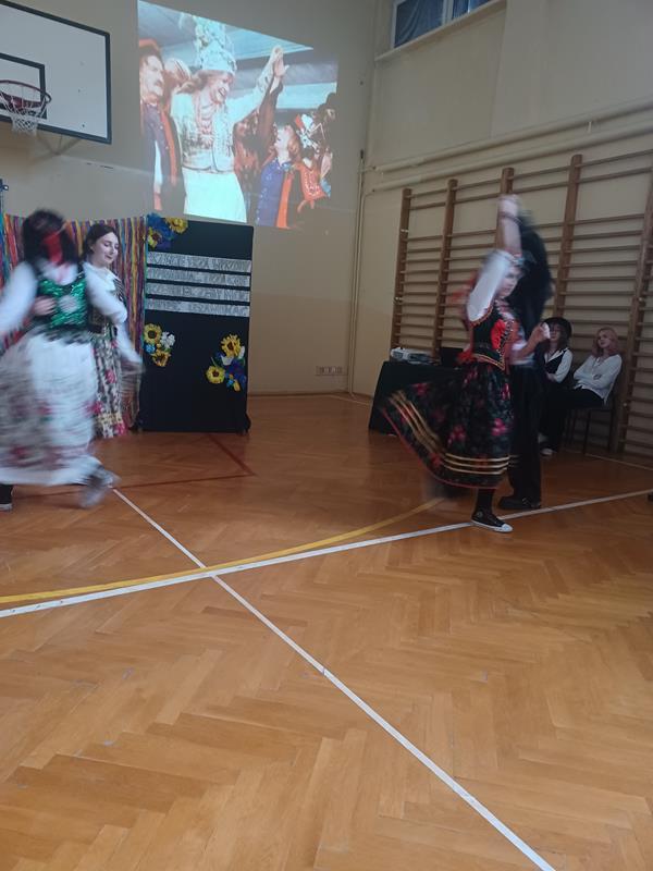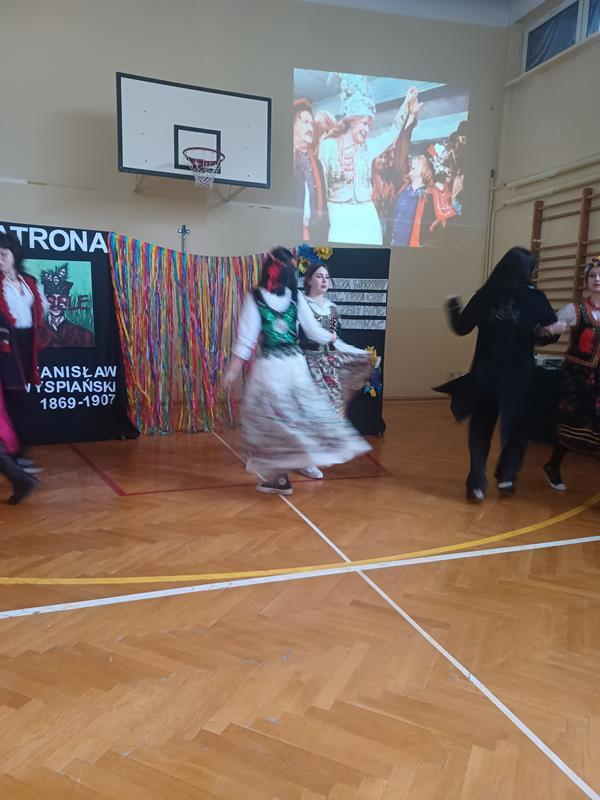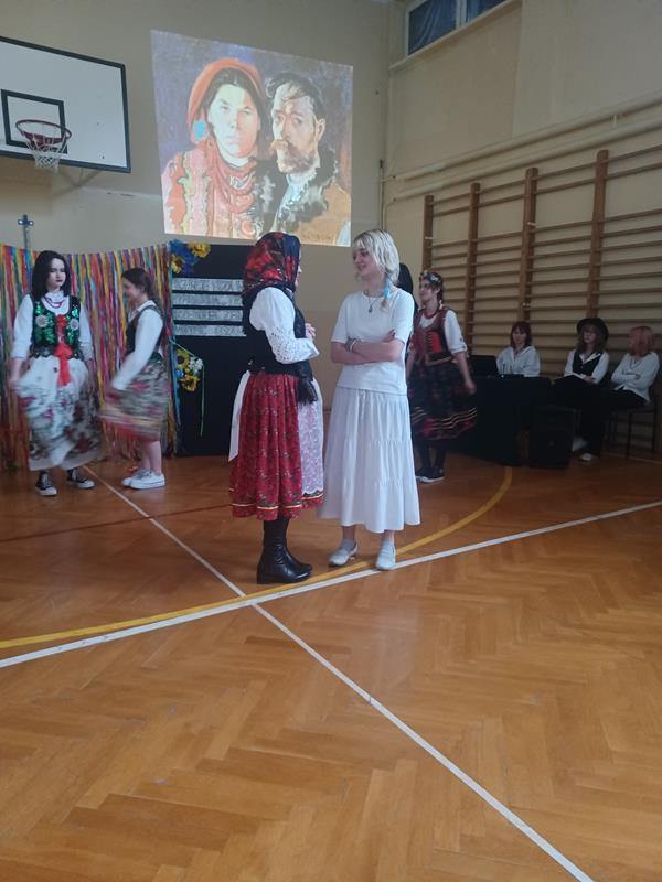 Nie zabrakło weselnych tańców i scenki z Wesela brawurowo odegranej przez uczennice klasy 2 TO. Całość uzupełniała przygotowana z rozmachem dekoracja, wspaniała muzyka i fragmenty ekranizacji Wesela w reżyserii Andrzeja Wajdy, które kompozycyjnie uzupełniały scenariusz szkolnego przedstawienia.