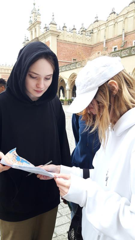 Mimo niesprzyjającej pogody nasza młodzież tropiła na Rynku Głównym znaki i szukała wskazówek, które pozwoliłyby jej zwyciężyć w grze terenowej, rozszyfrowując łacińskie hasło.