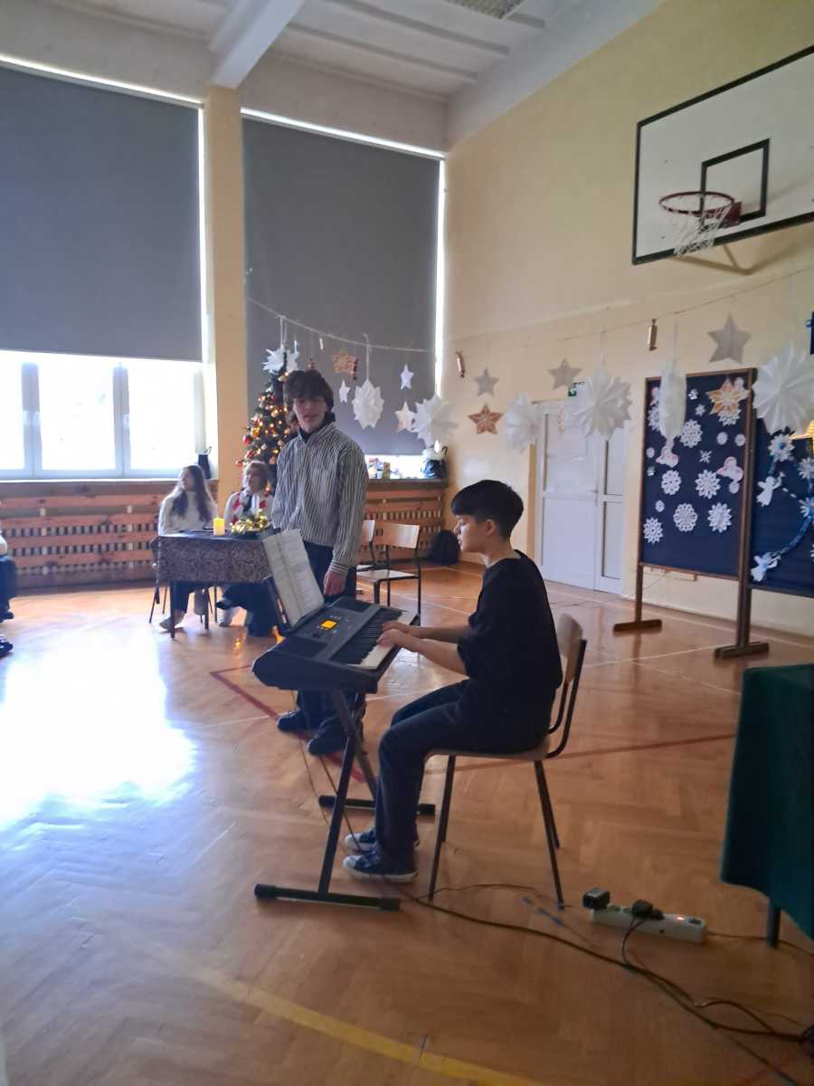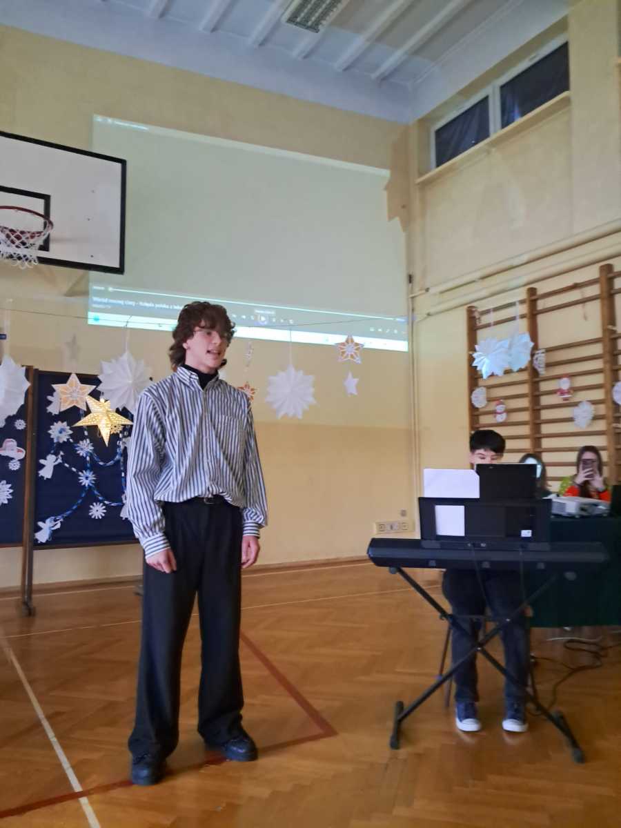 Radosną uroczystość przy choince uświetniły występy utalentowanych uczniów Szymona Kocurka z kl.3TSA, Piotra Furtaka z kl.3TSB oraz równie utalentowanej uczennicy kl.3TO Wiktorii Szewczyk.