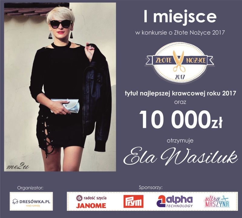 Elżbieta Wasiluk słuchaczka Kwalifikacyjnego Kursu Zawodowego wzięła udział w konkursie „Złote Nożyce 2017”, Konkurs organizowany był na portalu www.diymarket.pl Każdy uczestnik zakładał na tej stronie portfolio, gdzie pokazywał szyte przez siebie modele. Spośród kilkuset uczestników wyłoniono finałową dziesiątkę. Elżbieta Wasiluk zdobyła I miejsce.