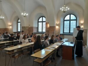 W dniu 29 lutego, w Klasztorze Ojców Franciszkanów w Krakowie, odbył się Etap Diecezjalny XVIII Ogólnopolskiej Franciszkańskiej Olimpiady Wiedzy o św. Maksymilianie. W konkursie wzięły udział dwie uczennice z naszej szkoły, Gabriela Porębska z klasy 2 TSB oraz Vanessa Stachowska z klasy 1 LB.