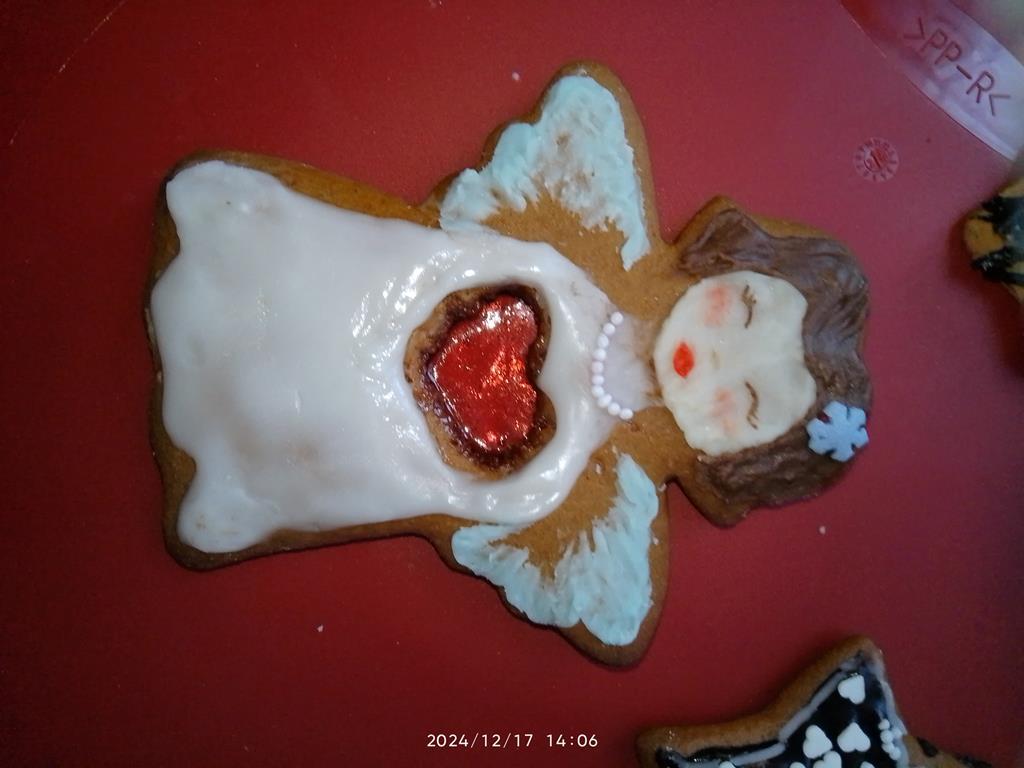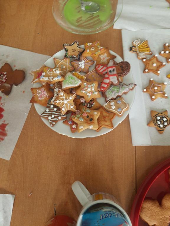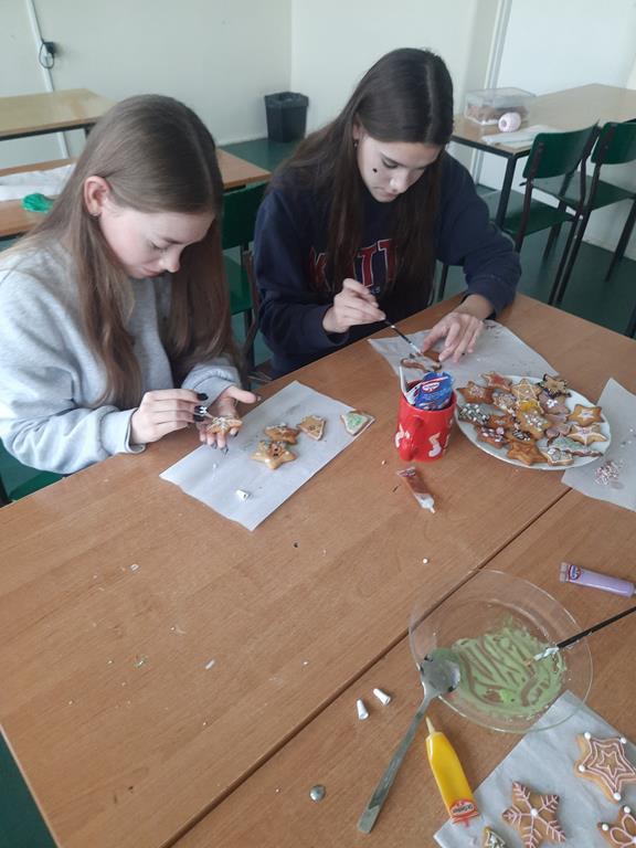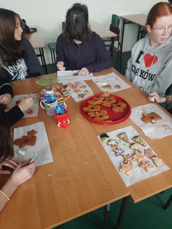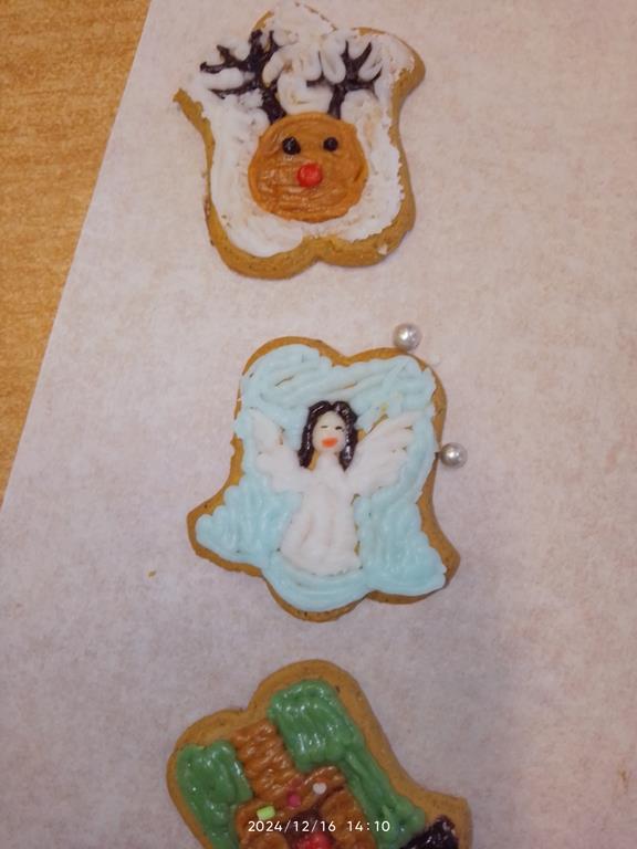Jak co roku młodzież bardzo chętnie przystąpiła do ozdabiania pierników i ciasteczek różnorodnymi wzorami. Wykorzystując swoje umiejętności plastyczne tworzyli z lukru i posypek bałwanki, aniołki, rentierki i domki.