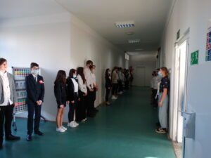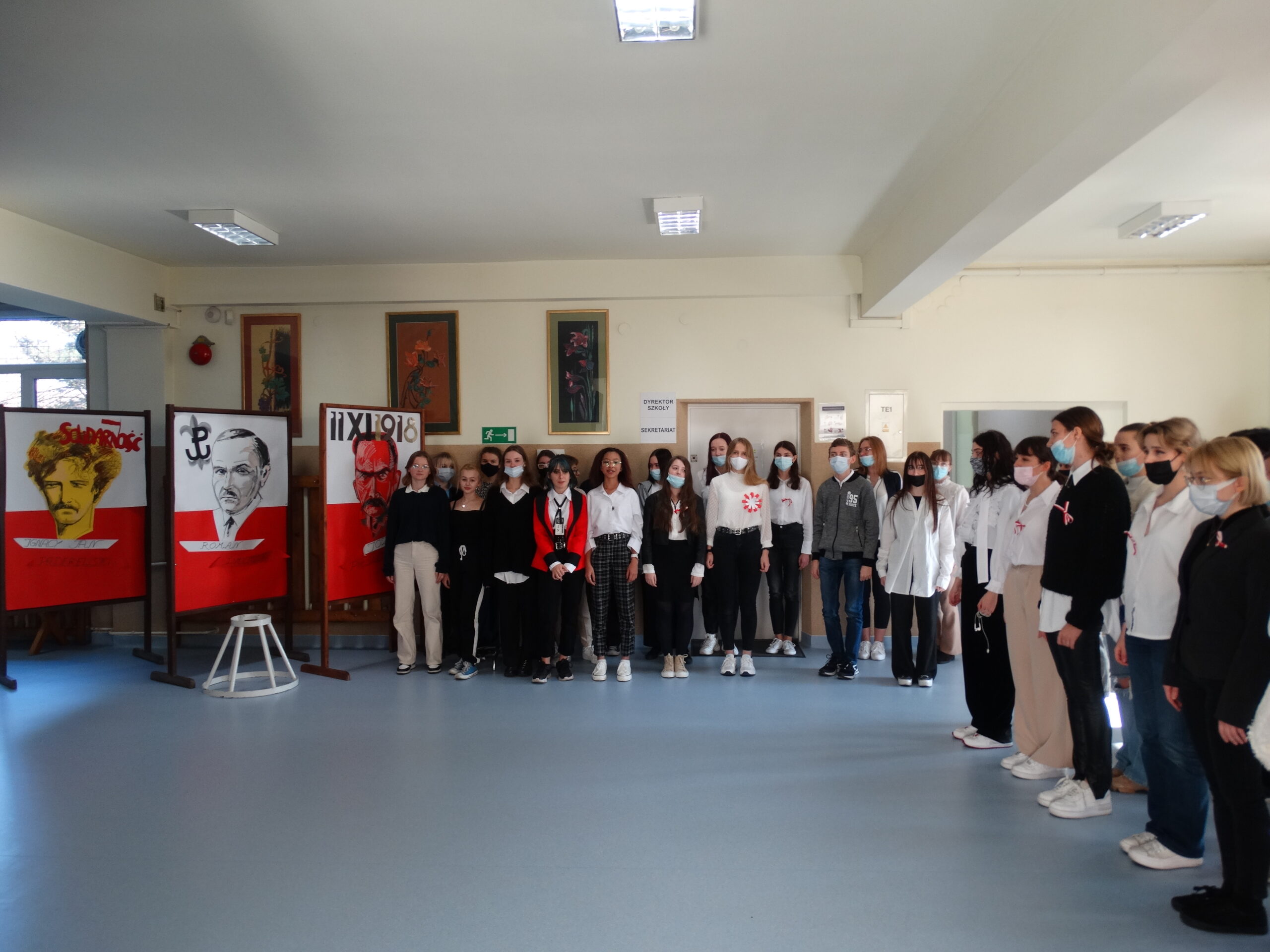 godzinie 11:11 na korytarzach Szkoły. Tło stanowiły obrazy bohaterów narodowych, którym w tym