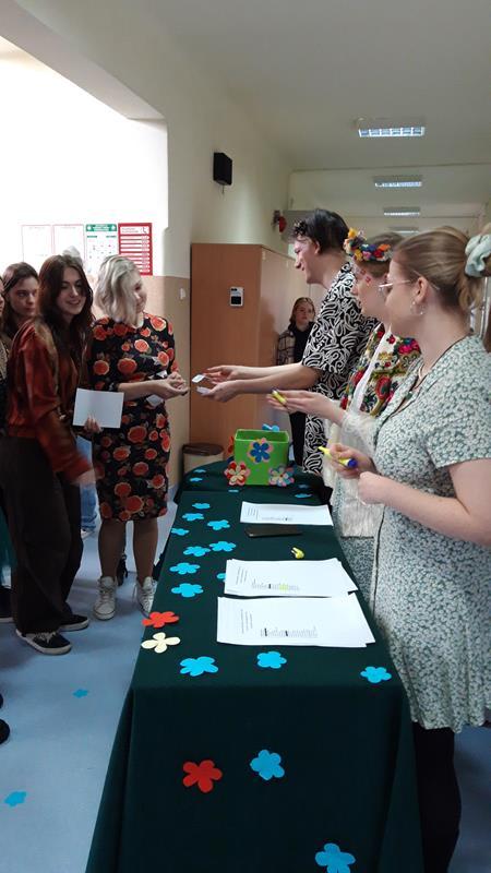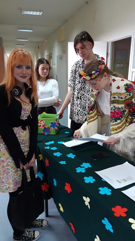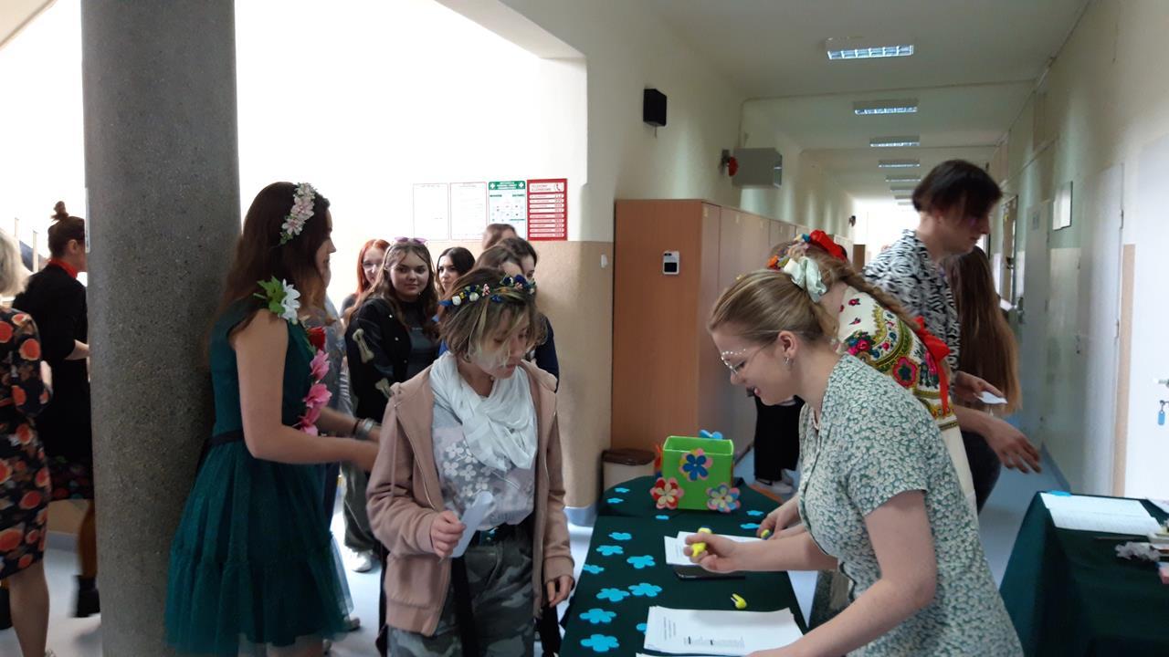 Zespół Szkół Odzieżowych powitał wiosnę kolorami: ubraliśmy się tego dnia w kwiatowe wzory i każdy kto miał na sobie taki właśnie strój mógł wziąć udział w wiosennej loterii z niespodzianką i wygrać nagrodę.