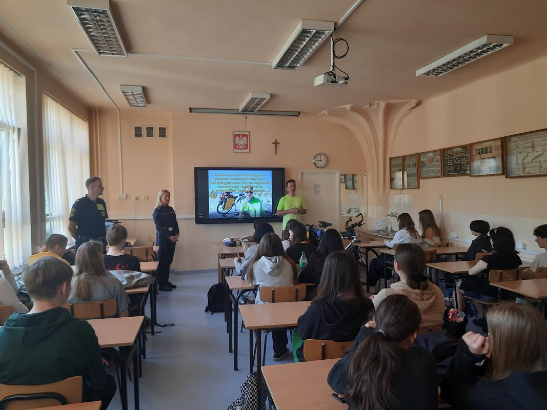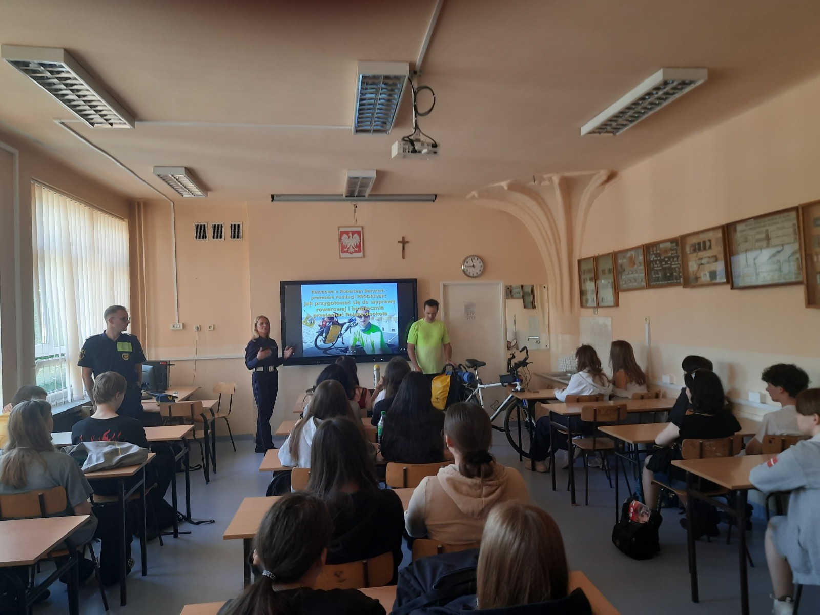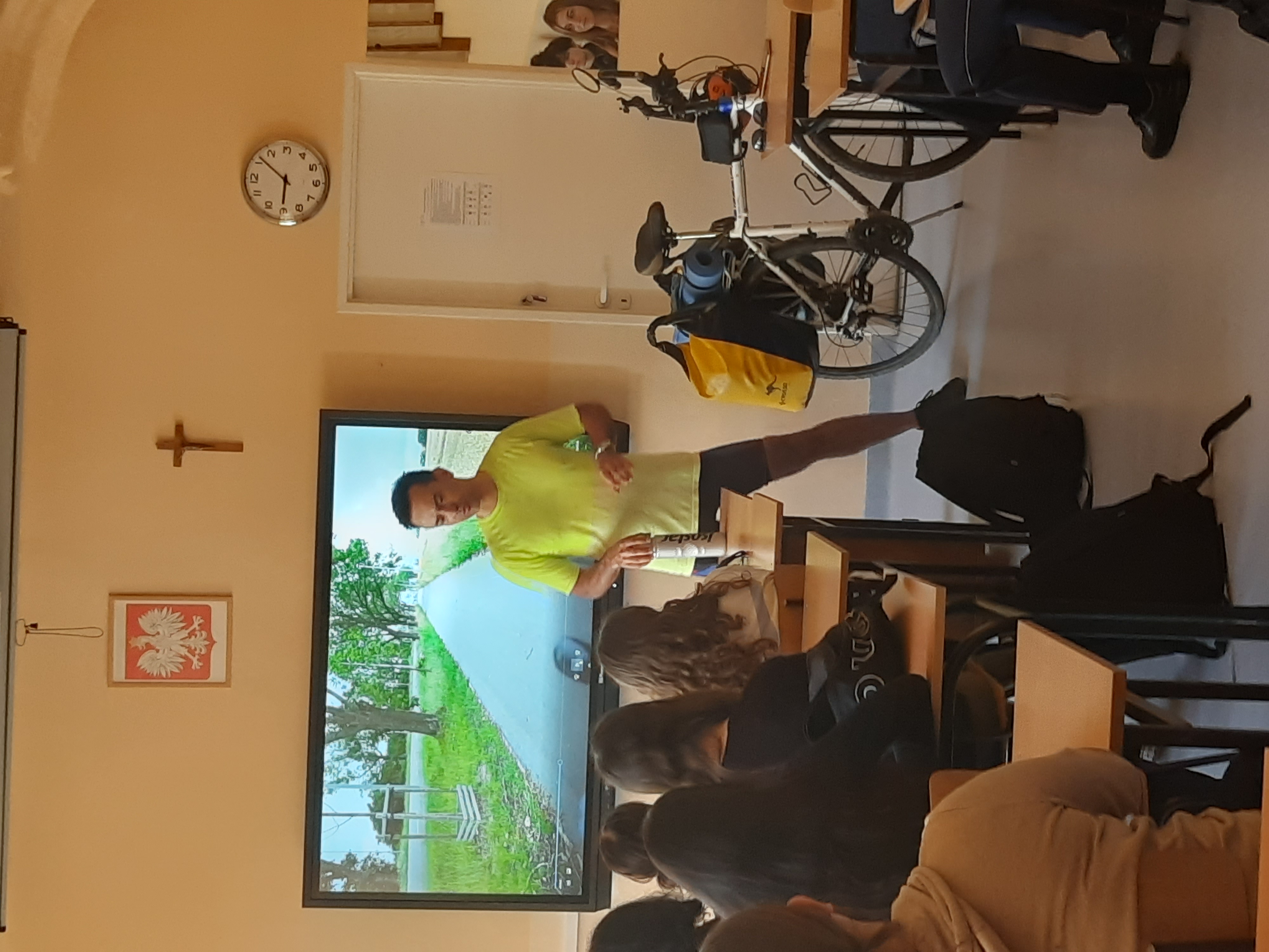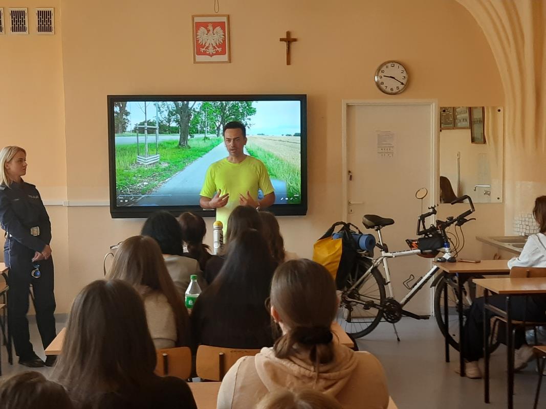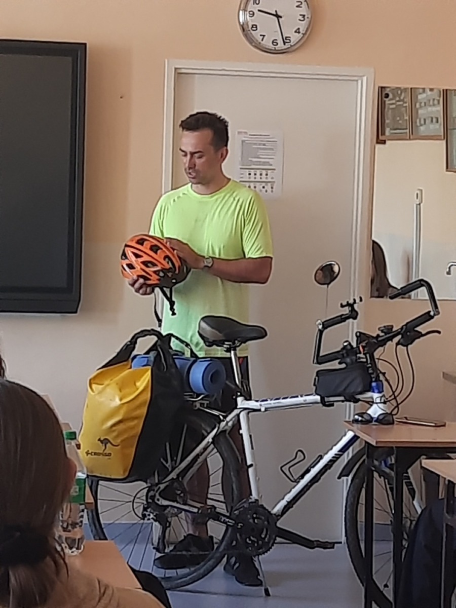 W dniu 23 maja nasza szkoła gościła Pana Roberta Barysa, który samotnie w 5 dni chce przejechać Polskę z Zakopanego do Gdańska (750km). Podczas swojego przejazdu spotyka się z młodzieżą z wybranych miast, jakie będzie mijał na trasie przejazdu, aby uczyć na swoim przykładzie bezpiecznej jazdy rowerem i hulajnogą i tłumaczyć młodym ludziom jak przygotować się do takiej wyprawy.