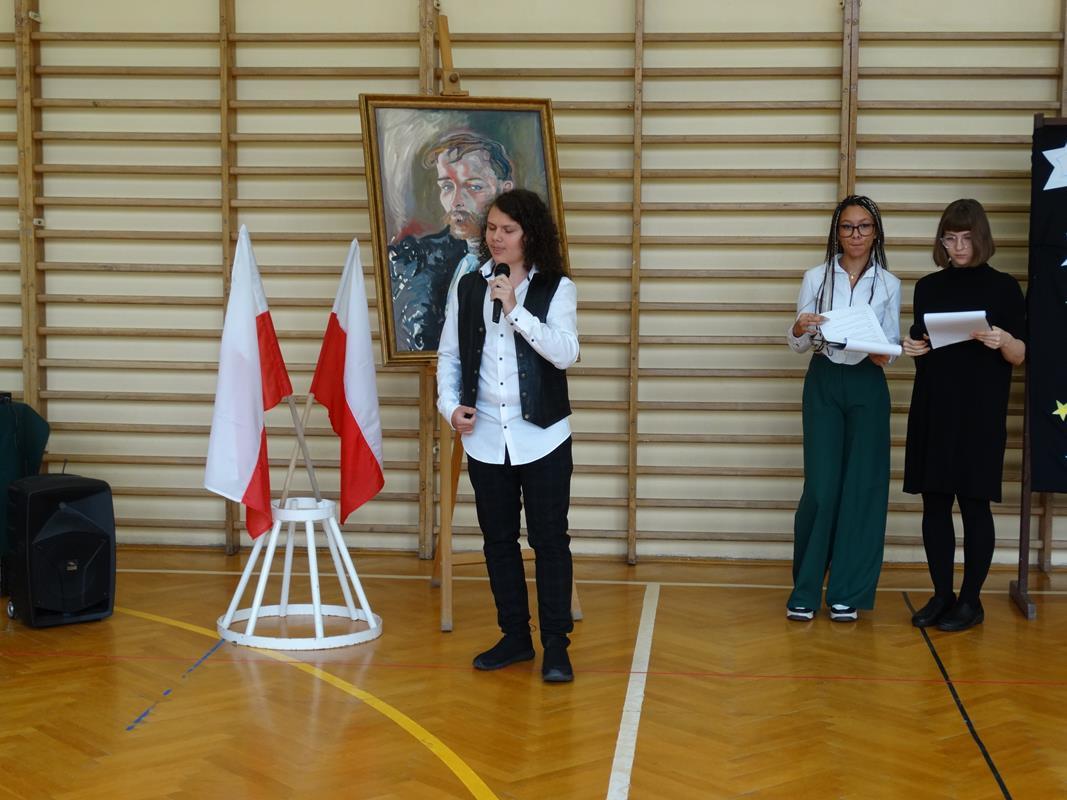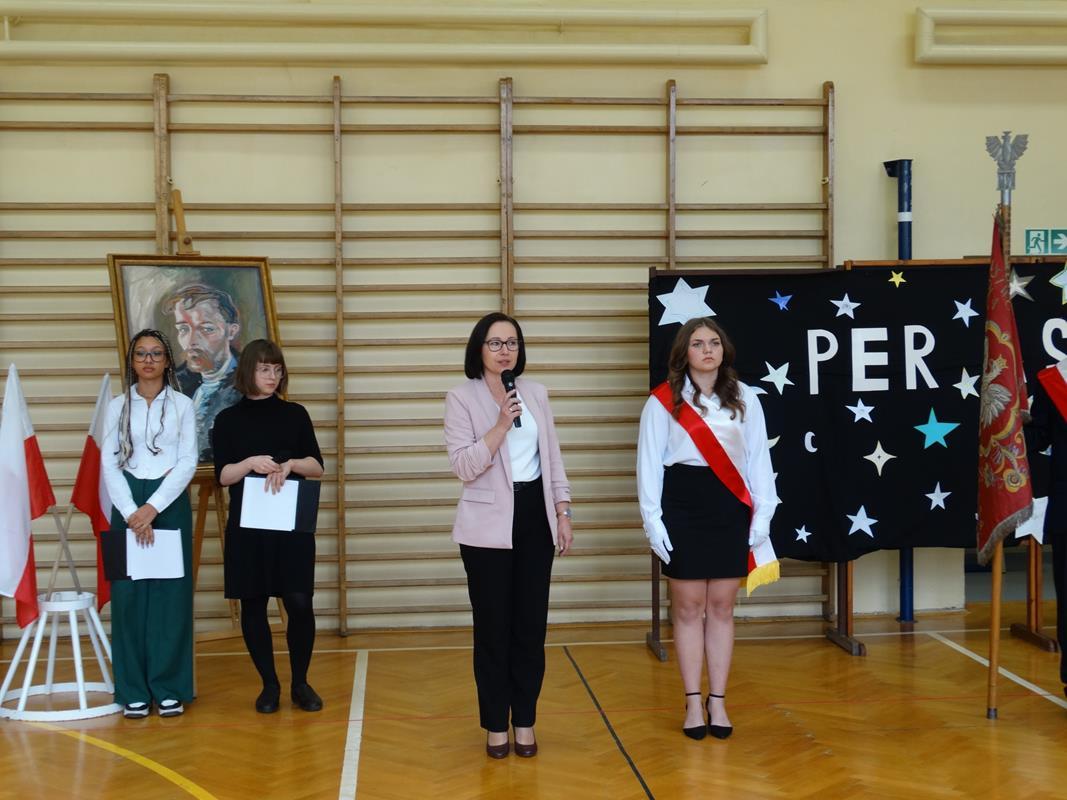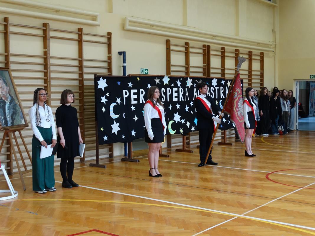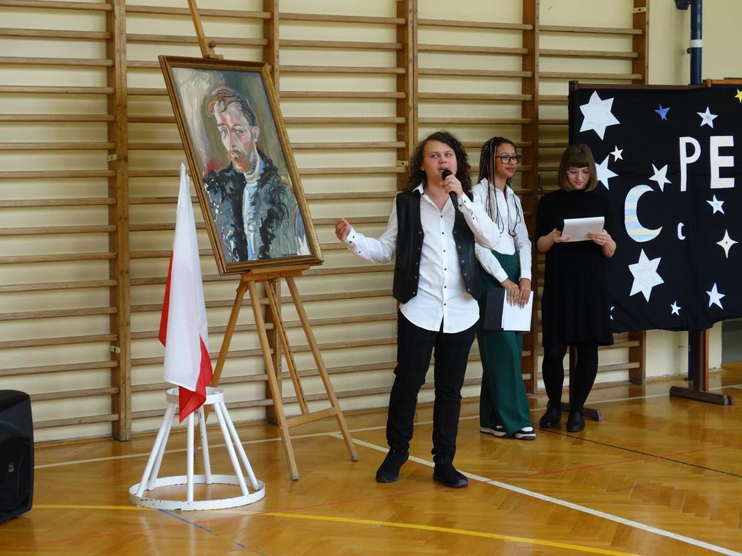 Delegacja uczniów złożyła kwiaty pod popiersiem Patrona Stanisława Wyspiańskiego. Pani Dyrektor Dorota Potoczny w swoim przemówieniu życzyła młodzieży sukcesów w nauce, zrealizowania planów i marzeń.