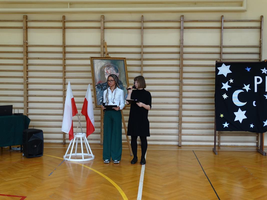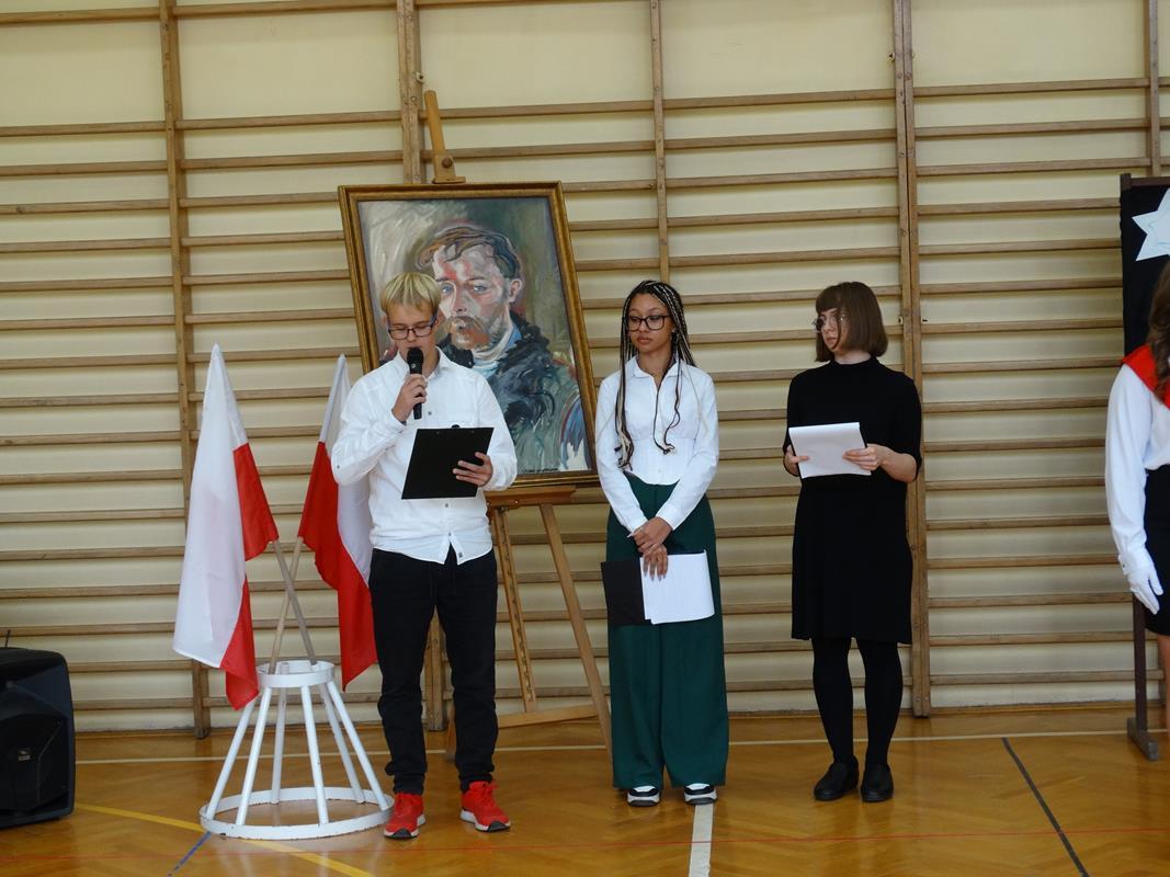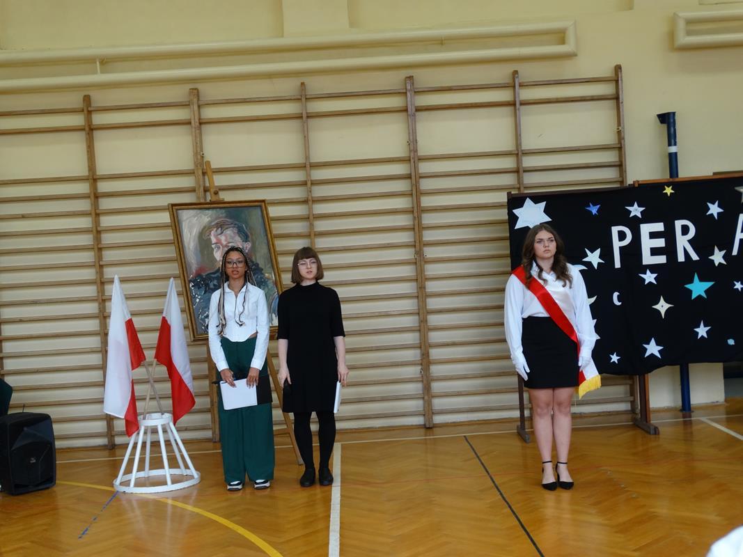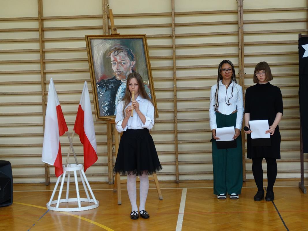 Delegacja uczniów złożyła kwiaty pod popiersiem Patrona Stanisława Wyspiańskiego. Pani Dyrektor Dorota Potoczny w swoim przemówieniu życzyła młodzieży sukcesów w nauce, zrealizowania planów i marzeń.
