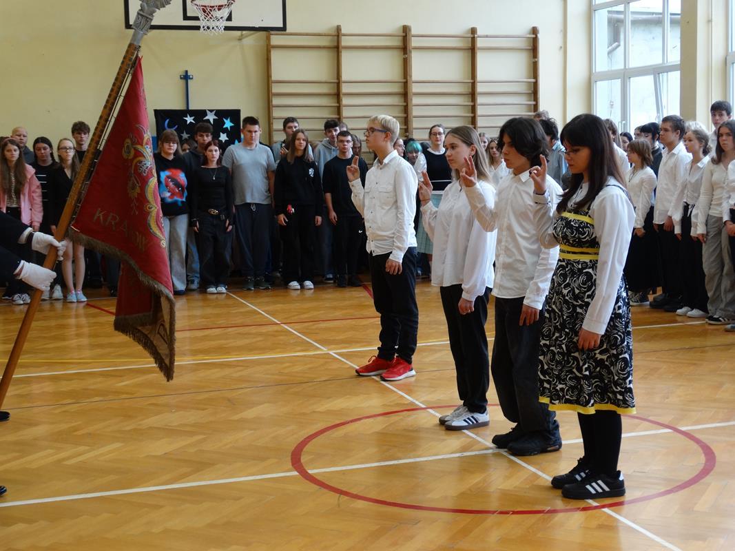 Przysięgę złożono na Sztandar Szkoły, było podniośle i uroczyście.