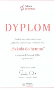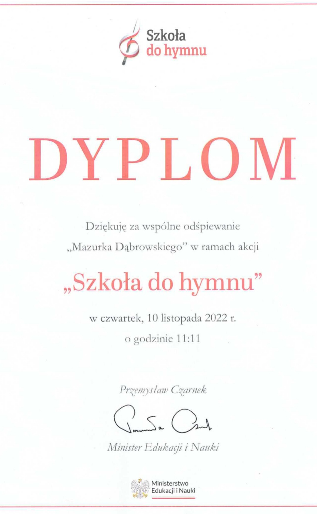 10 listopada 2022 roku o godz. 11.11 uczciliśmy kolejną 104 rocznicę odzyskania niepodległości przez Polskę wspólnym odśpiewaniem Mazurka Dąbrowskiego.