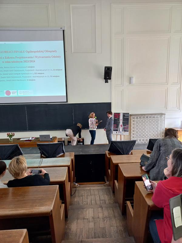 Uczestnicy obejrzeli prezentacje kolekcji odzieży młodych projektantów. Wzięli udział w podsumowaniu Ogólnopolskiej Olimpiady Wiedzy i Umiejętności z Zakresu Projektowania i Wytwarzania Odzieży oraz wręczania nagród LAUREATOM wśród których nasz uczeń Mateusz Warchoł z klasy 3TO, który zdobył 3 miejsce w tegorocznej edycji konkursu.