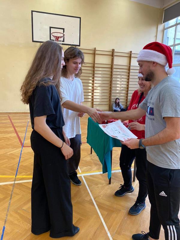 Na zakończenie turnieju wszyscy zawodnicy otrzymali czekoladowe mikołaje. Zwycięzcom zostały wręczone dyplomy oraz nagrody rzeczowe. Tradycyjnie też rozlosowaliśmy nagrody dodatkowe, tym razem były to świąteczne kubki.
