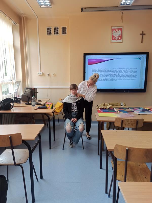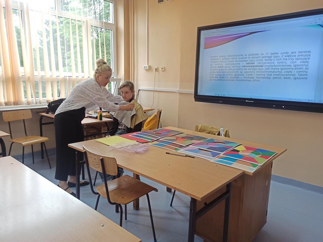 6. czerwca 2023 roku odbyły się warsztaty ze stylizacji dla klasy 1TSA i 1TSB. Tematem warsztatów była „Psychologia barw. Określanie typu kolorystycznego”. Zajęcia prowadziła Pani Izabela Waszkiewicz.