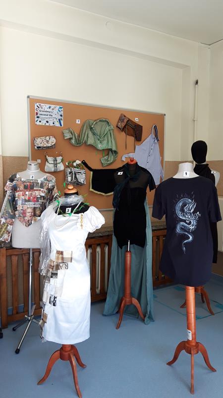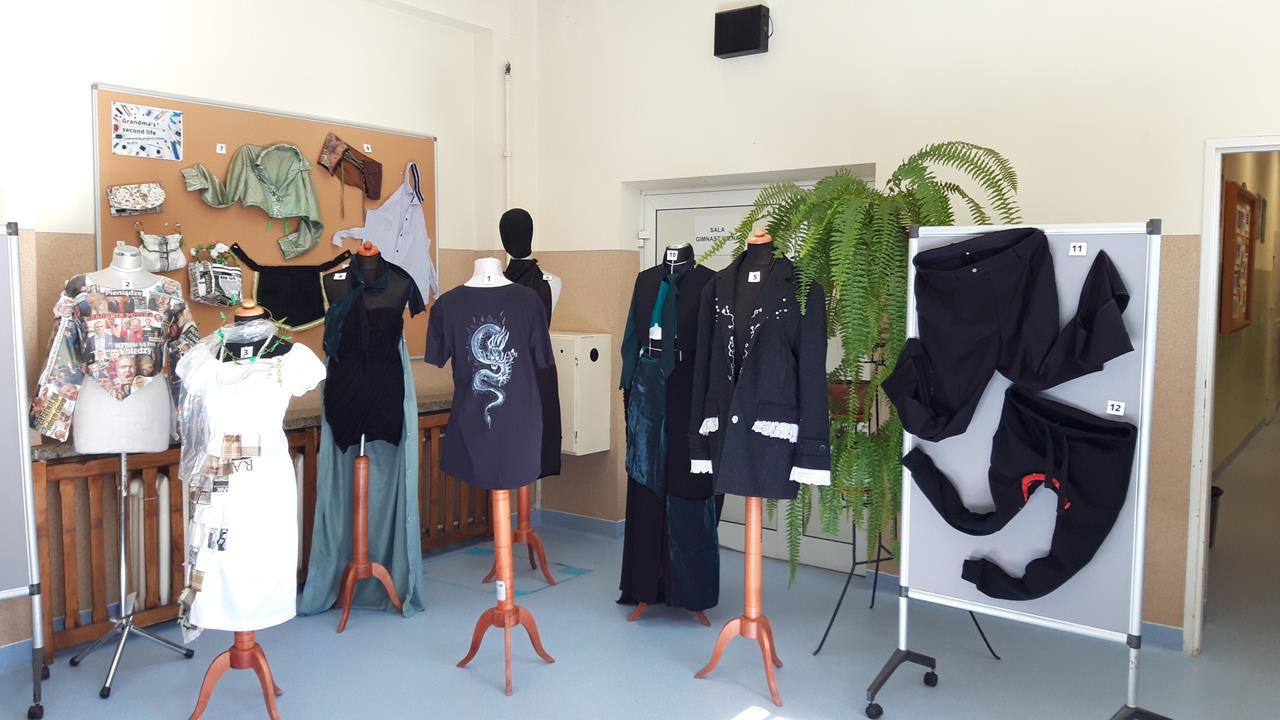 W holu głównym szkoły, na parterze, można podziwiać wystawę prac klasy II TO „Grandma’s Second Life” – projektów wykonanych w technice upcyclingu, w ramach zajęć z języka angielskiego zawodowego.