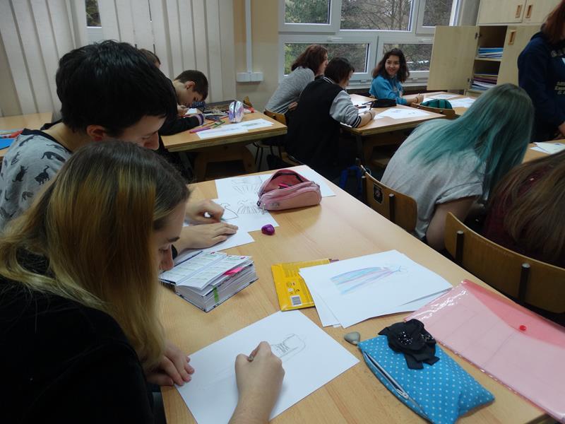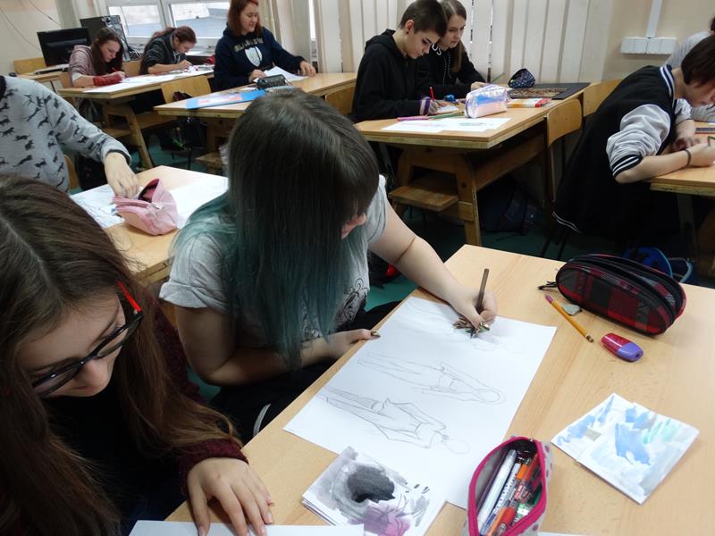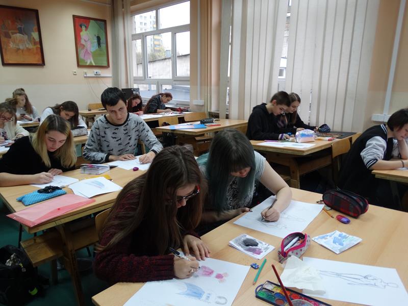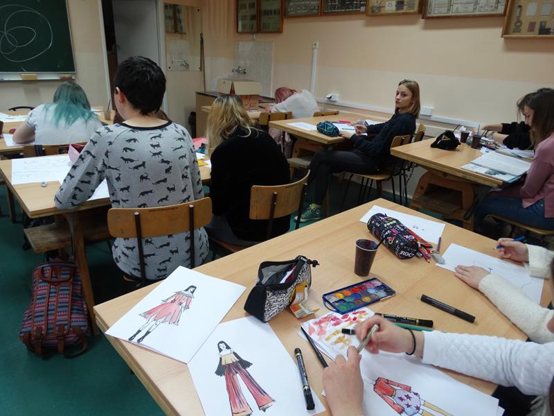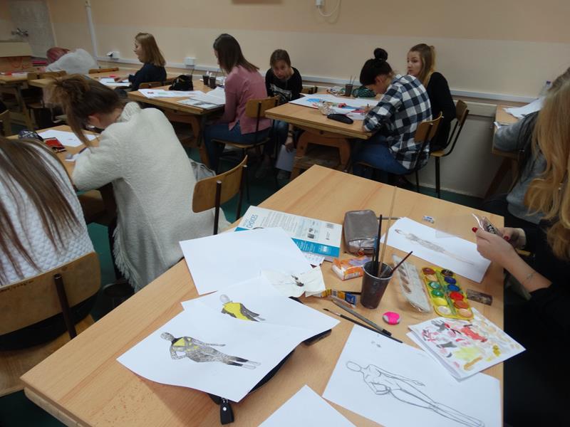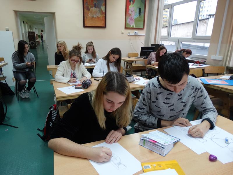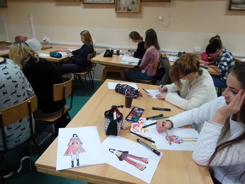 Klasa II technikum pod czujnym okiem Pana Profesora Artura Zienko uczy się projektowania i stylizacji ubiorów.