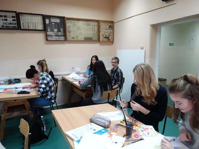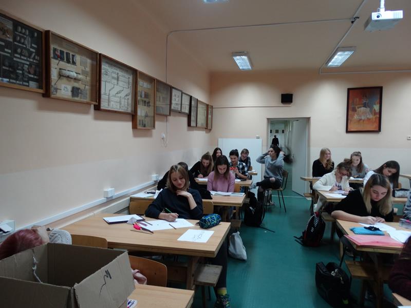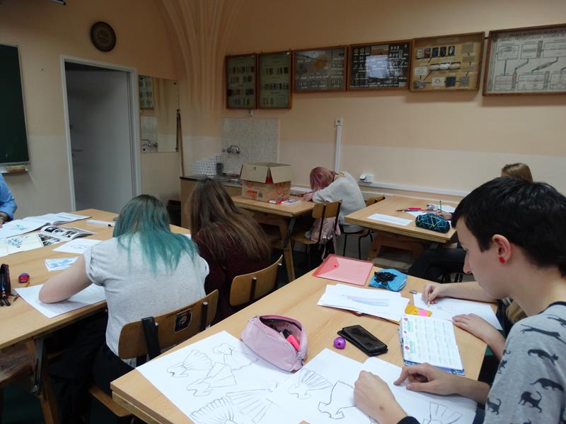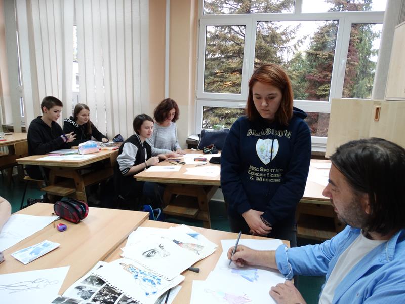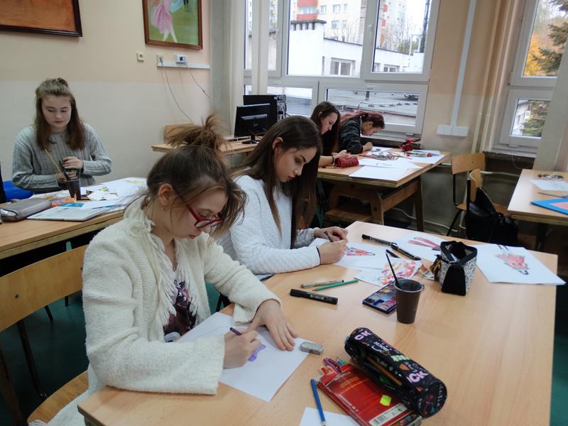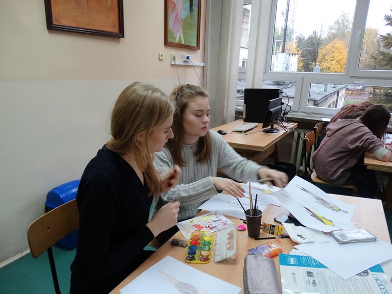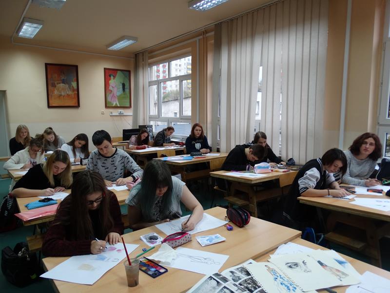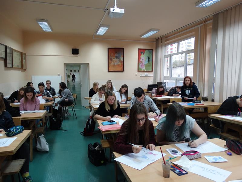 Klasa II technikum pod czujnym okiem Pana Profesora Artura Zienko uczy się projektowania i stylizacji ubiorów.