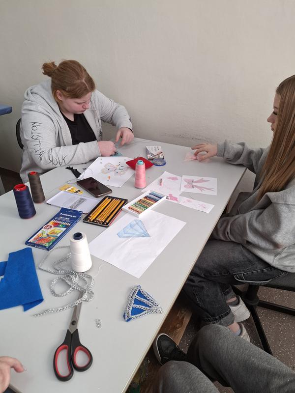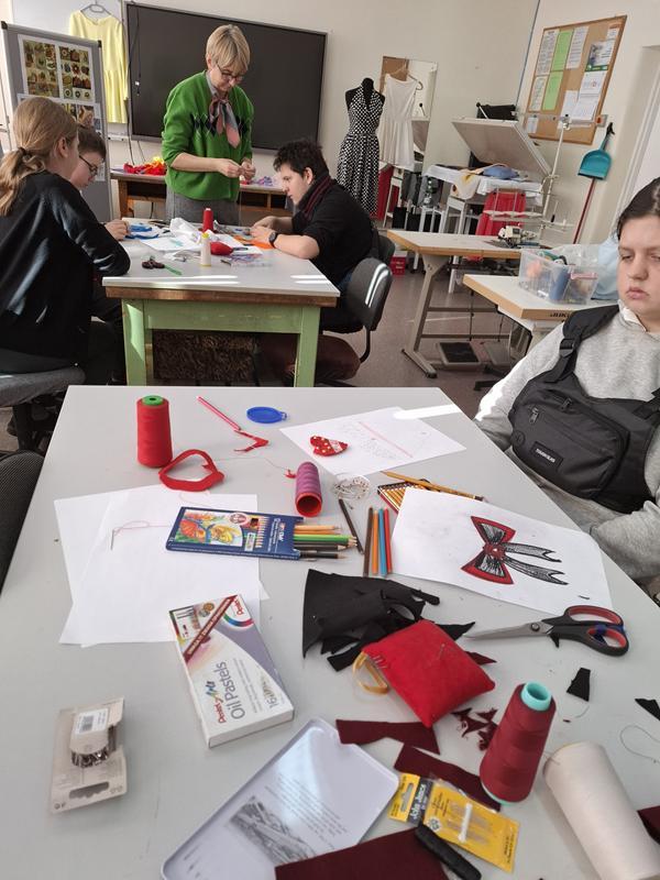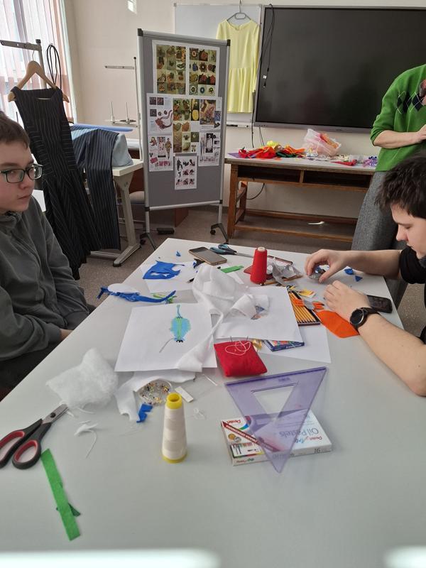 W pracowniach warsztatowych odbyły się zajęcia pt. „Świat szycia”, podczas których uczniowie projektowali i wykonywali ozdobne zapinki do odzieży i innej galanterii.