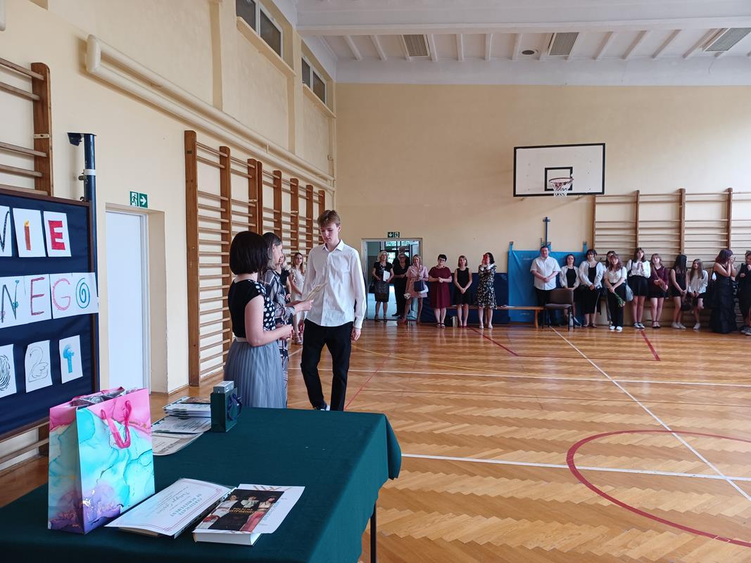Pani Dyrektor mgr Dorota Potoczny podziękowała młodzieży za bardzo dobre wyniki w nauce, wzorowe zachowanie, udział w olimpiadach, konkursach, pracy na rzecz szkoły. Wyróżnieni otrzymali dyplomy oraz upominki. Samorząd Uczniowski w imieniu wszystkich uczniów i rodziców złożył podziękowania Dyrekcji i Nauczycielom za miniony rok szkolny.