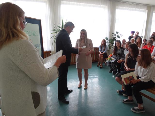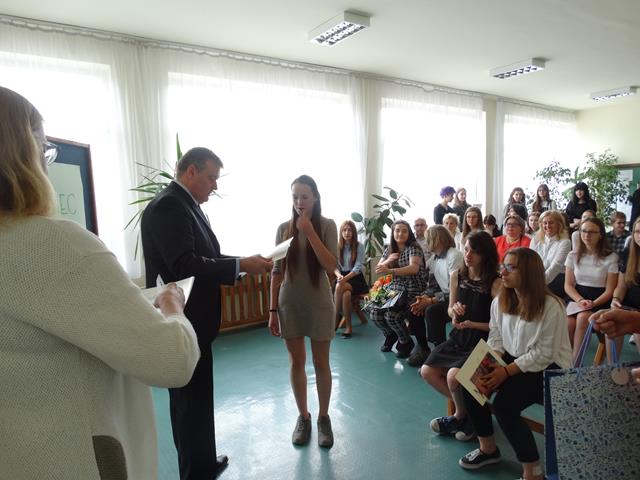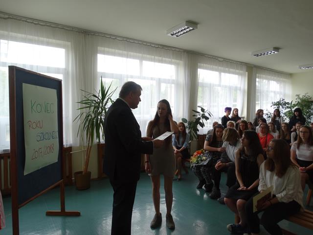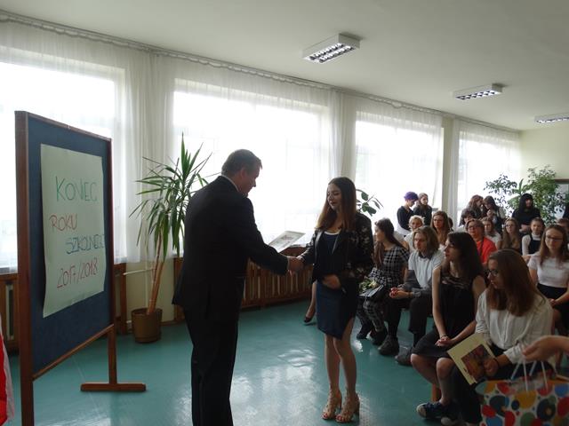 Na zakończenie ostatniego w tym roku szkolnym spotkania społeczności uczniowskiej Dyrektor Andrzej Pawlikowski raz jeszcze pogratulował uczniom sukcesów. Życzył wszystkim szczęśliwych bezpiecznych wakacji, spokojnego odpoczynku, poznania wartościowych ludzi i odwiedzenia wielu pięknych miejsc.